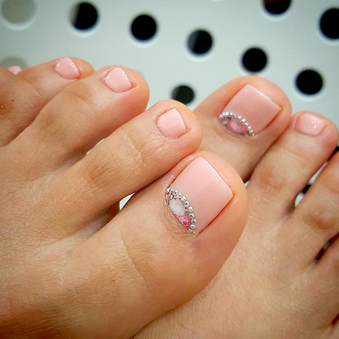 - clasic romantic. Aceasta implică colorarea suprafeței gălbenelei într-un ton roz sau bej, corespunzător nuanței sale naturale și alungirii cu un zâmbet bine definit de-a lungul liniei tăiate. Această metodă standard este departe de a fi nouă în domeniul pedichiurii, dar continuă să fie populară;