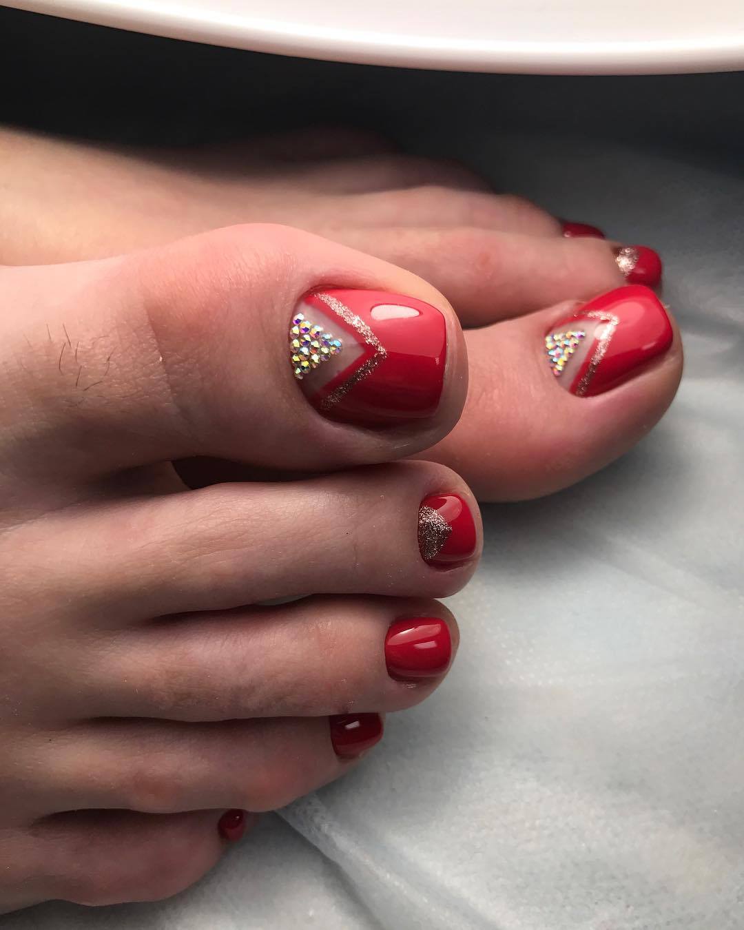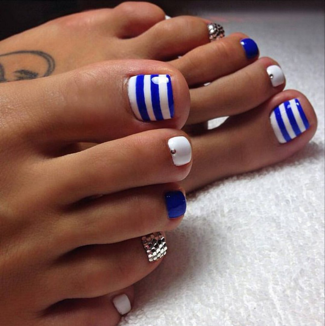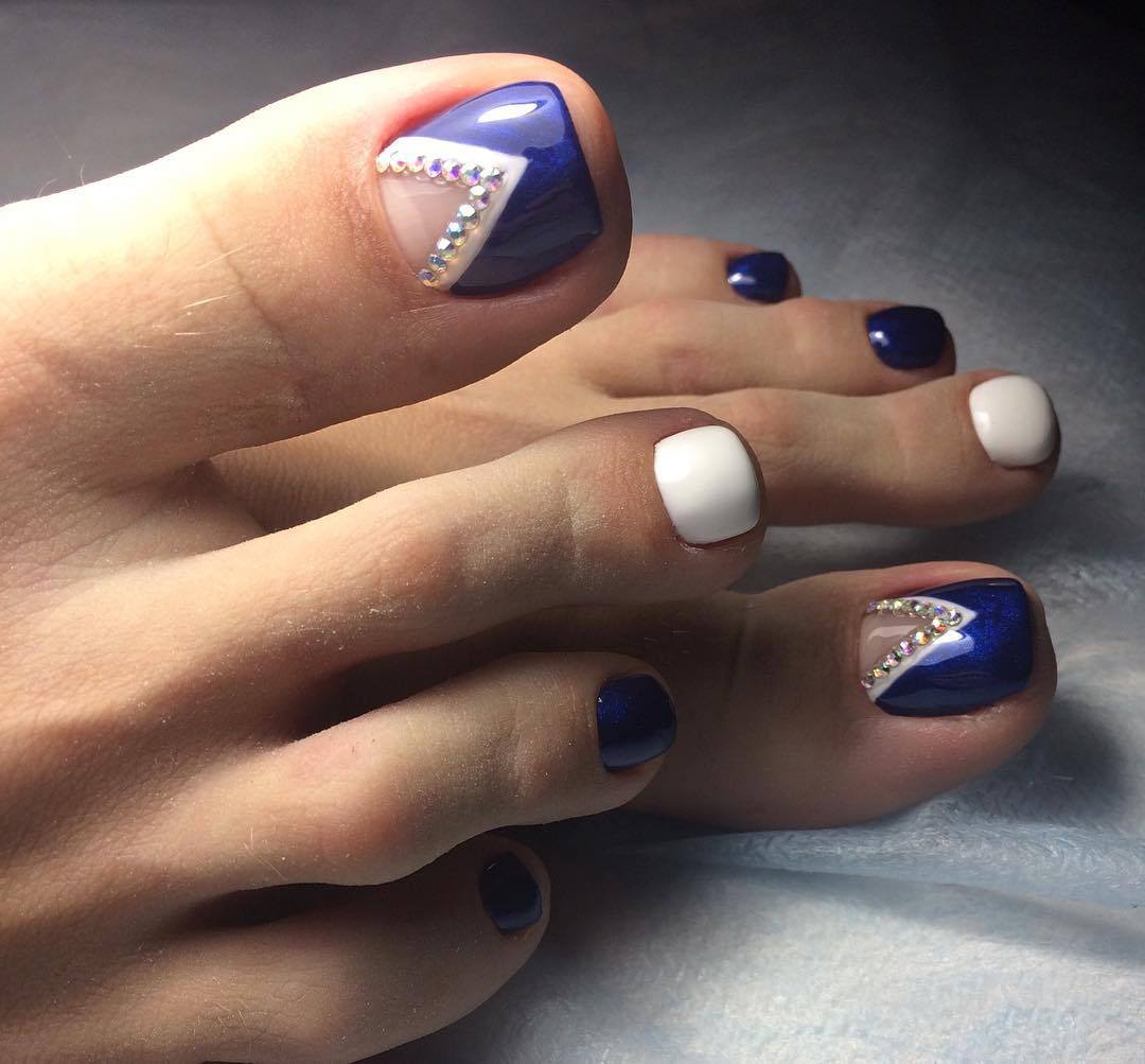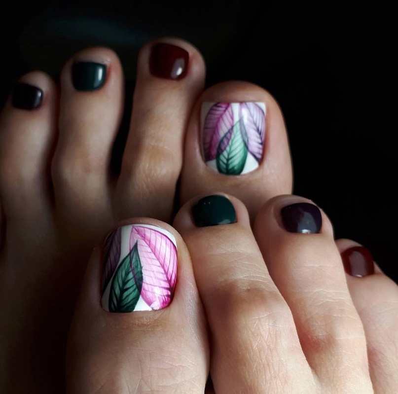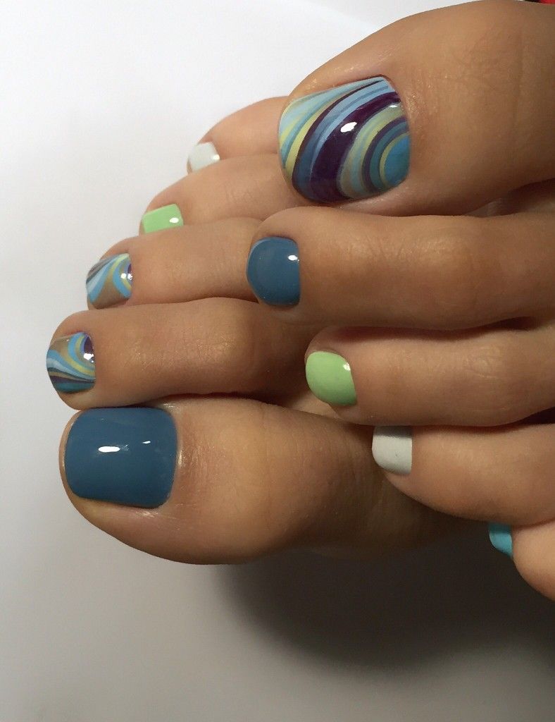- varietate de culori.După cum sa menționat mai devreme, în zilele noastre nu veți surprinde pe nimeni cu albi standard. În timpul verii, este un păcat să nu folosești dreptul de a te juca cu culori bogate, deoarece picioarele sunt deschise de cele mai multe ori. O bază delicată de mentă cu o linie de zâmbet roșu sau o combinație de galben cu portocaliu, alb cu roșu, albastru cu o nuanță albastră electrică - toate aceste aranjamente arată imbatabil. Idei foarte pitorești și evidente;