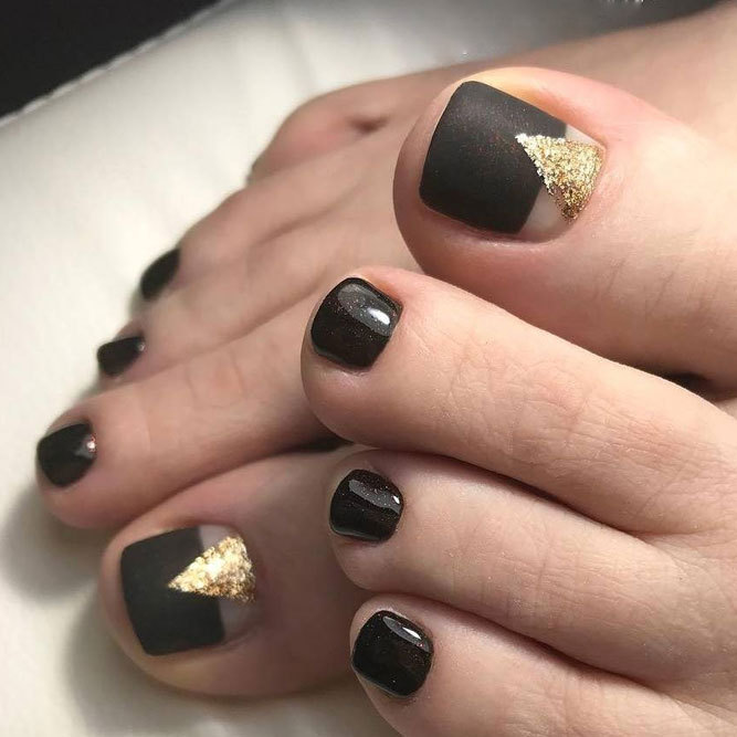 O rudă apropiată a versiunii anterioare, unghia lunară, aplică aceleași recomandări. Găurile simple și uniforme nu mai sunt interesante pentru nimeni. De ce să nu ne oprim la triunghi? Vopsirea deasupra bazei sau lăsarea transparentă este o chestiune de gust. În acest caz, procesul de îmbunătățire a frumuseții nu va dura mult timp, deoarece va fi posibilă conturarea găurii doar pe degetul mare. Vopsiți doar restul cu o singură culoare.