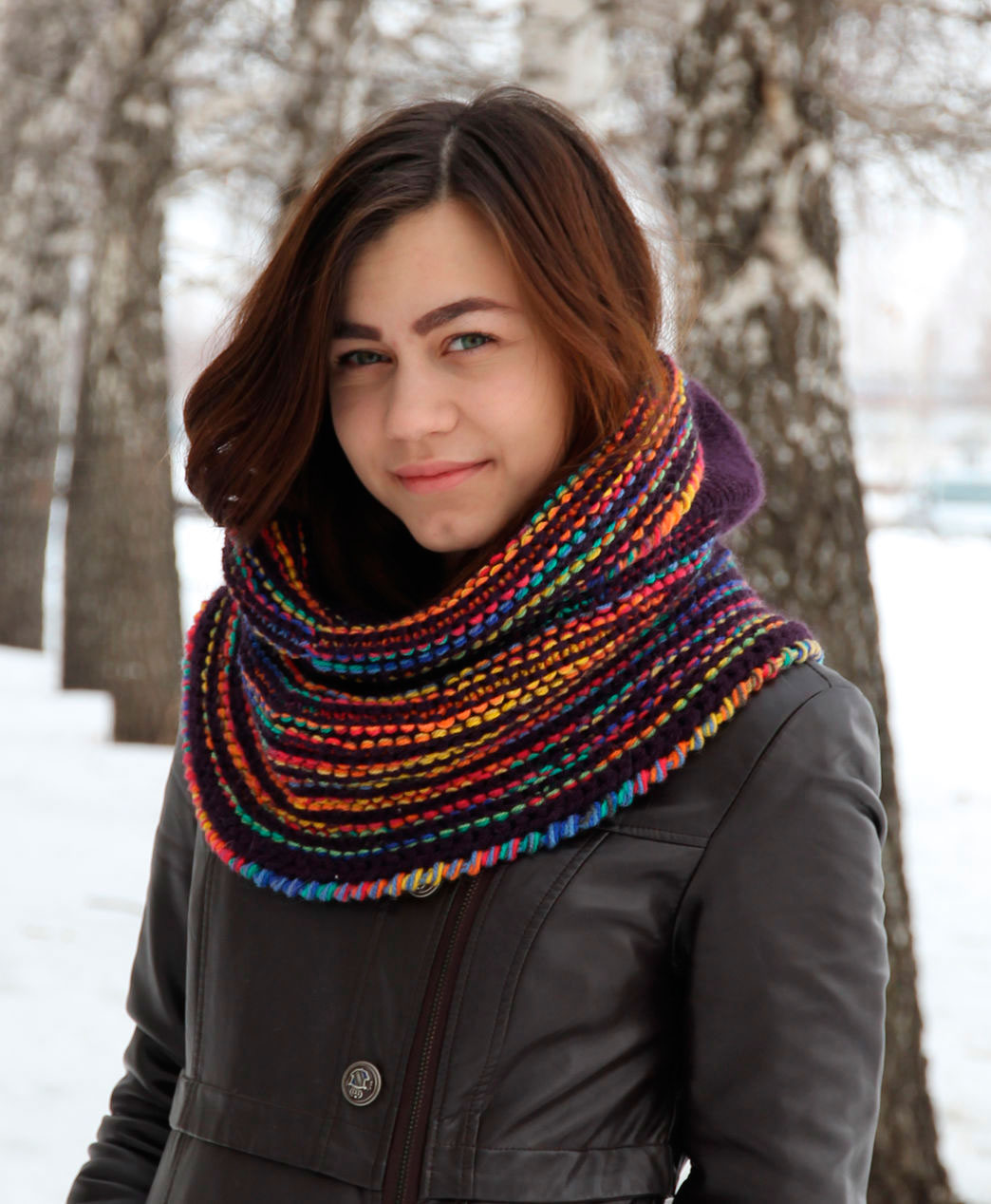 În sezonul de iarnă, eșarfele de tip transformator cu tricot grosier și grosier sunt relevante.Așadar, îți poți izola în mod suplimentar capul dacă vremea neașteptat de rea te-a depășit pe stradă. Puteți purta mui pe mâneci și jambiere pe picioare. Se va dovedi a fi un ansamblu foarte cald și confortabil.