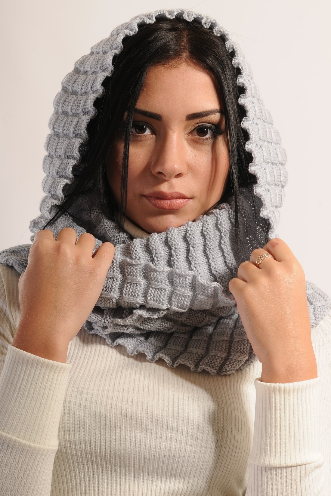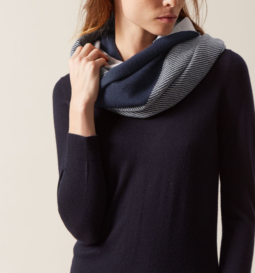 - Înainte de a ieși din casă, deschide-ți dulapul și marchează ținutele pe care vrei să le completezi cu snood. Dacă observați cel puțin 2-3 combinații, nu ezitați să mergeți la cumpărături.