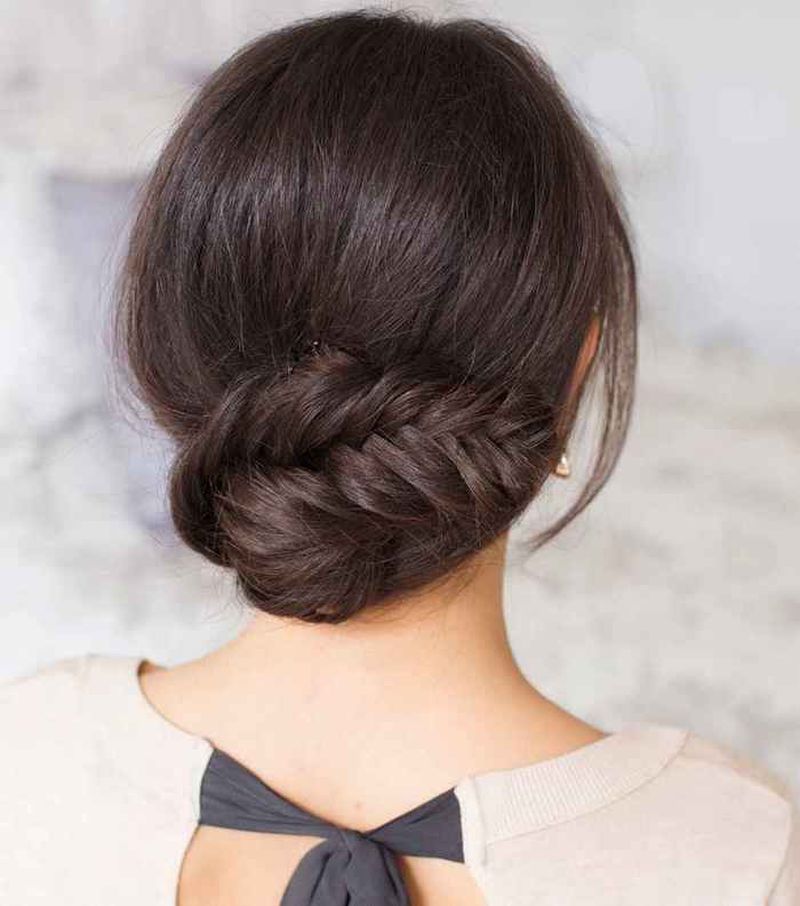 Ce zici de un fascicul dublu? Se va dovedi grozav din părul natural gros. Arată uimitor, mai ales cu un element decorativ luminos: o floare mare, o broșă împodobită cu strasuri, o panglică strălucitoare în jurul conului etc.