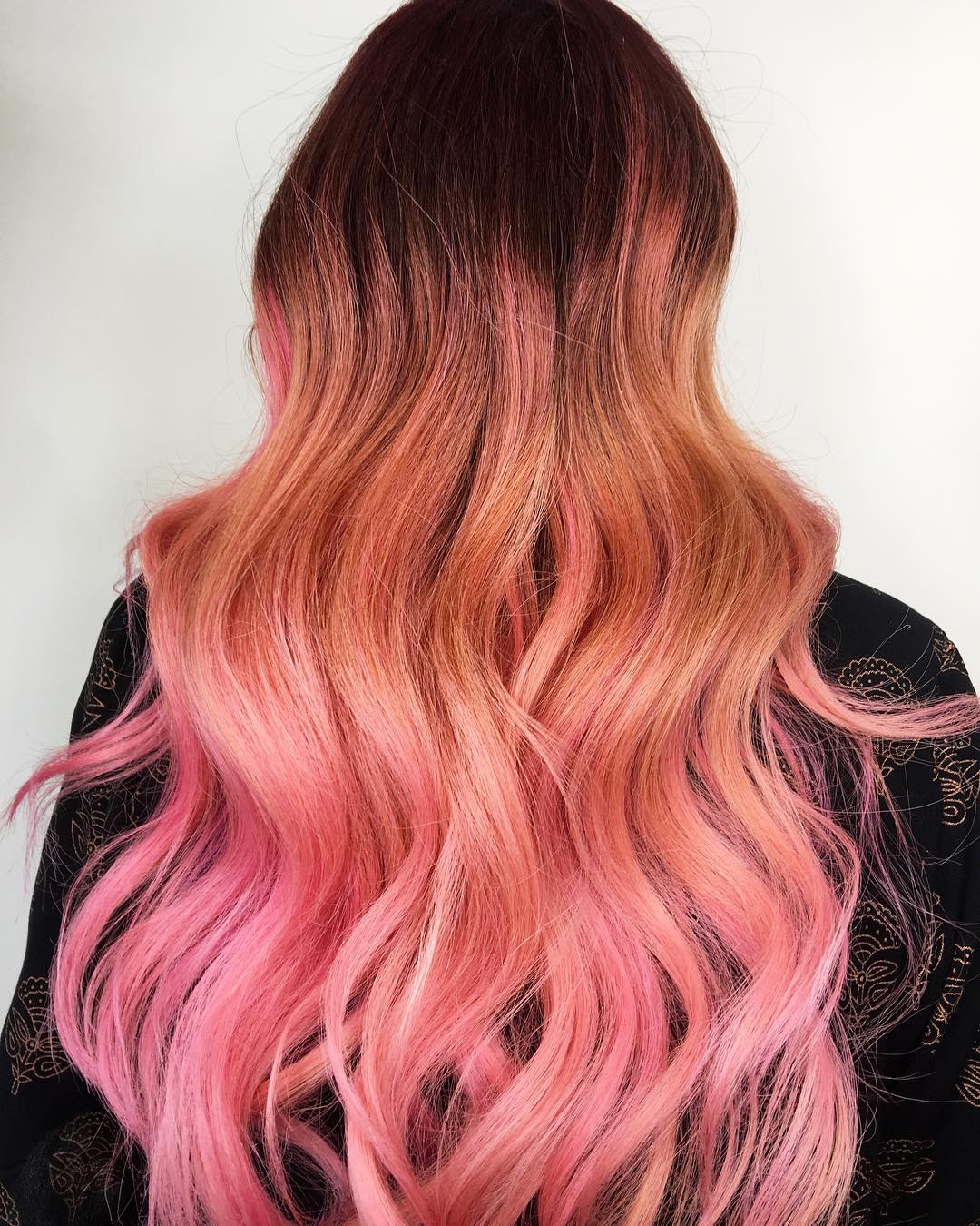 Examinons dans l'ordre certaines des conditions requises pour l'utilisation de ces variétés populaires de combinaisons de couleurs. Toute la palette rosée conviendra aux boucles légères. La plupart des stylistes disent avec assurance qu'aujourd'hui cette technique est très pertinente. C'est le contraste avec l'ensemble du volume qui vous permet de créer un accent délicieux sur l'une de ces options originales.