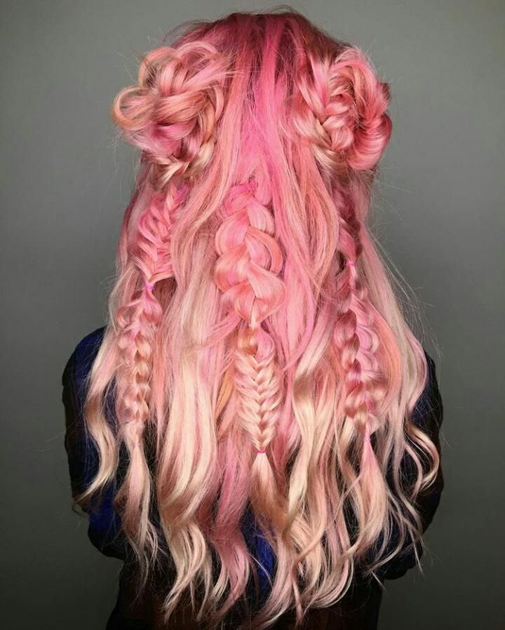 Si les mèches ont un aspect plus foncé, elles créeront un superbe duo en compagnie d'un fuchsia brillant. Ils ont également fière allure en combinaison avec un rose fumé. Dans ce cas, peu importe que la nuance des extrémités ou des brins change. L'essentiel est que ces tresses soient harmonieuses et correspondent au concept de l'image, sans perturber l'équilibre stylistique global.
