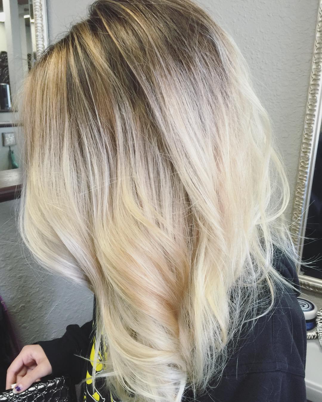 Les débordements de couleurs lisses des racines naturelles aux extrémités blanchies avec une bordure claire sont également charmants pour les femmes à la mode aux cheveux blonds. Les transitions de dégradé sont combinées avec des boucles droites et bouclées, elles enveloppent une femme de charme et d'attrait magnétique.