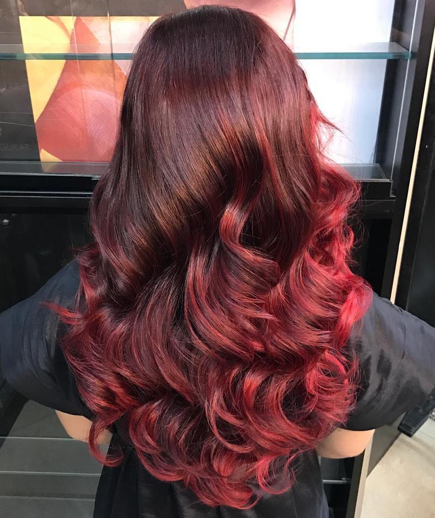 La "crinière" rouge et rouge est un signe de luxe et de charme. Elle rayonne de mystère et rend son propriétaire mystérieux et séduisant. Les vins chers de prune mûre et d'acajou conviennent aux femmes aux cheveux noirs.
