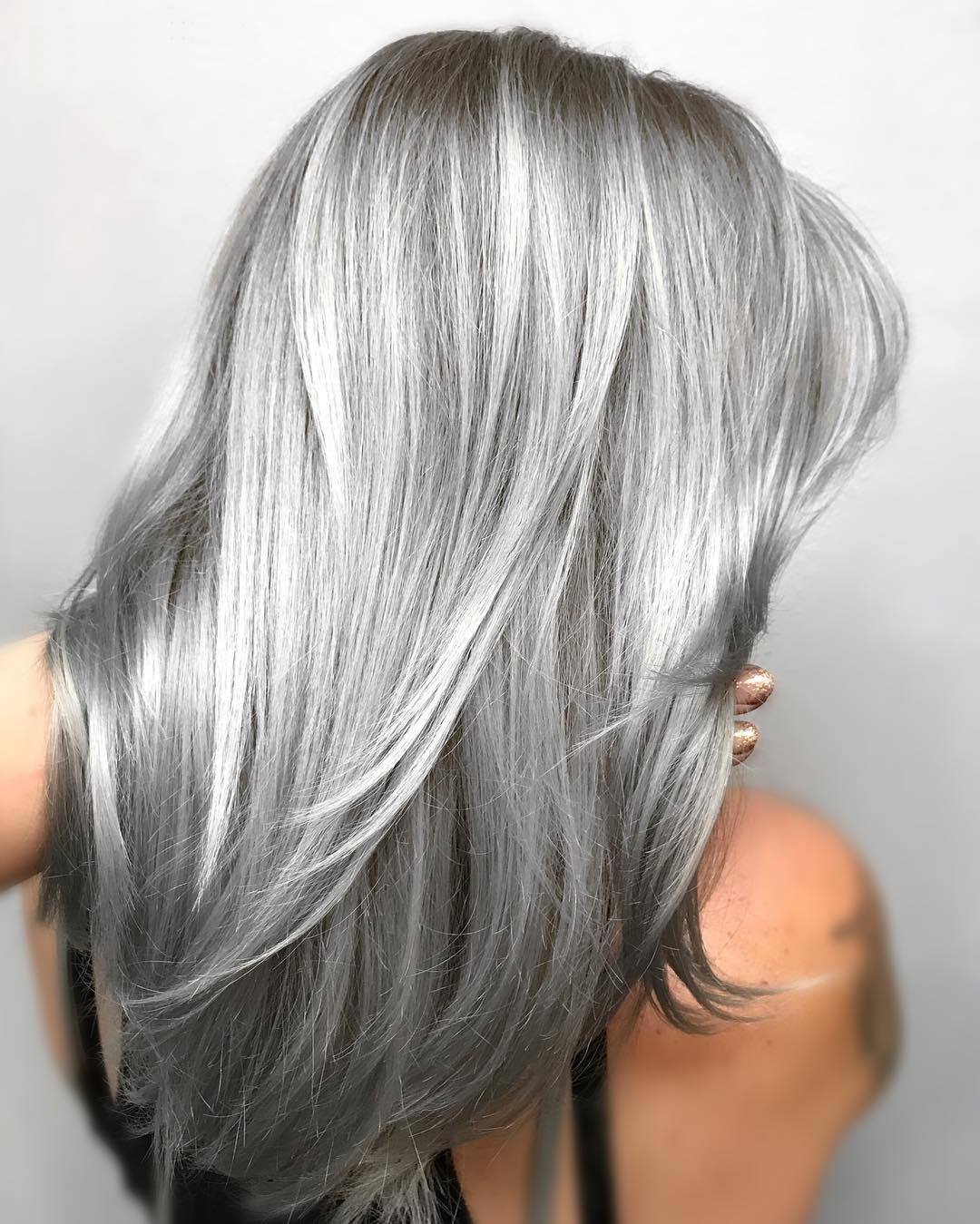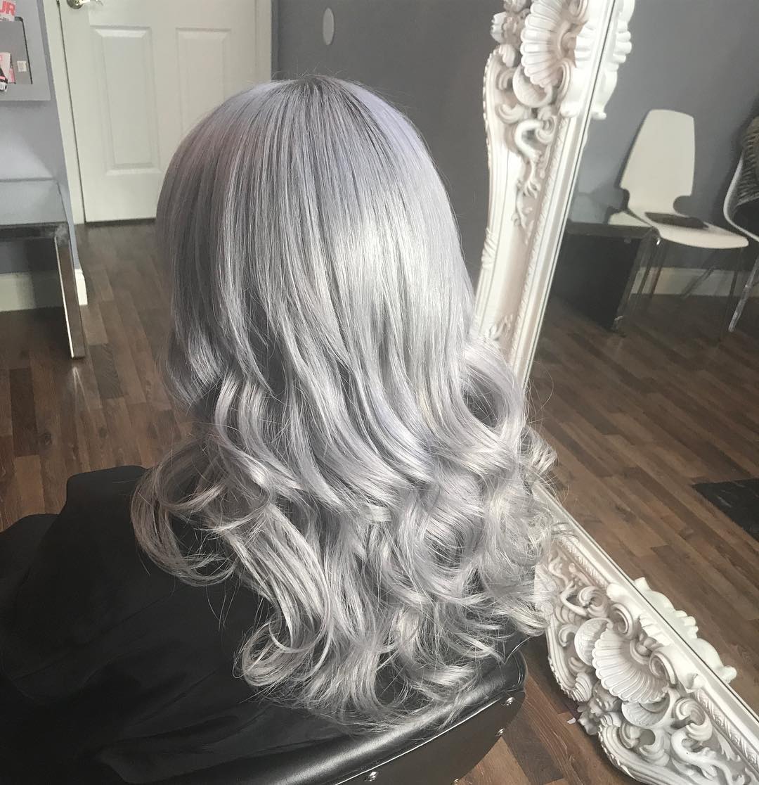 - La toute première étape vers la réalisation de votre désir est de décolorer. Le gris est une nuance non naturelle qui nécessite une attention et des soins particuliers. Après éclaircissement, la couleur sélectionnée s'adaptera au mieux.
