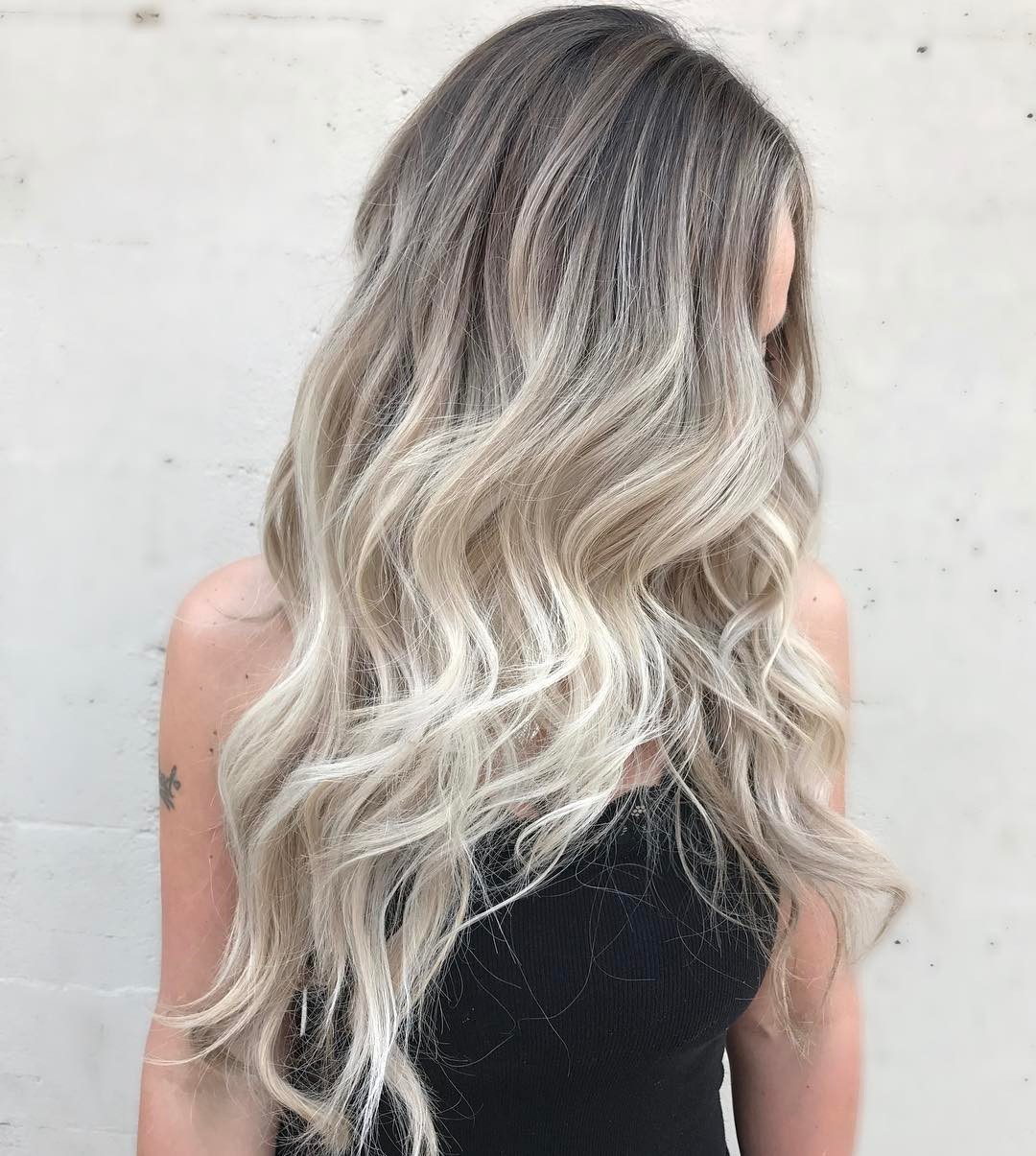 - Gris cendré l'un des plus communs même parmi les personnes célèbres en raison du fait qu'il a l'air très naturaliste sur les boucles blondes et blondes. Il existe différentes variantes - vous pouvez colorer vos boucles de manière classique ou le faire en 3D (en utilisant trois nuances). Pour créer un effet volumineux, vous avez besoin de nuances blondes, cendrées et marron clair.