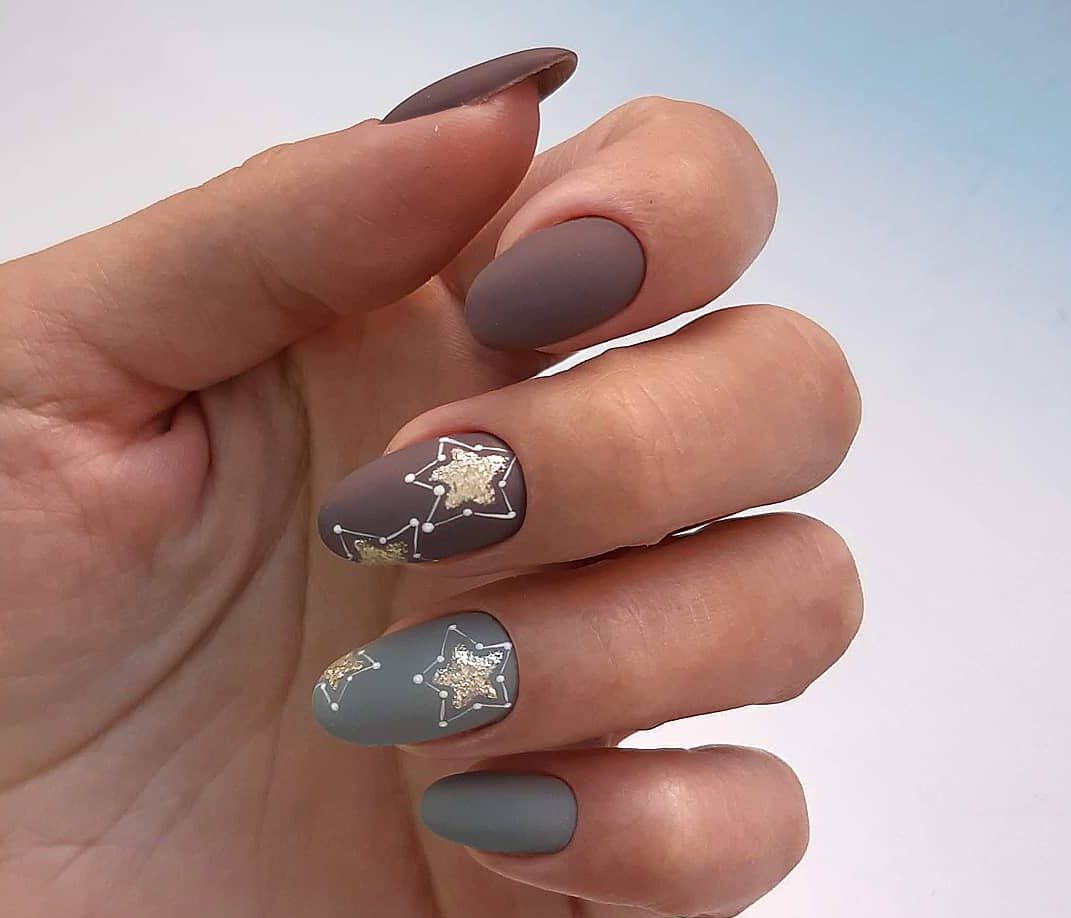 Autre tendance cette année, l'application d'un fini mat sur le vernis habituel. Il transforme n'importe quel gel irisé en un haut fantaisie non brillant. Du fait que le décor devient plus calme, il peut être combiné avec d'autres décorations et tenues lumineuses.