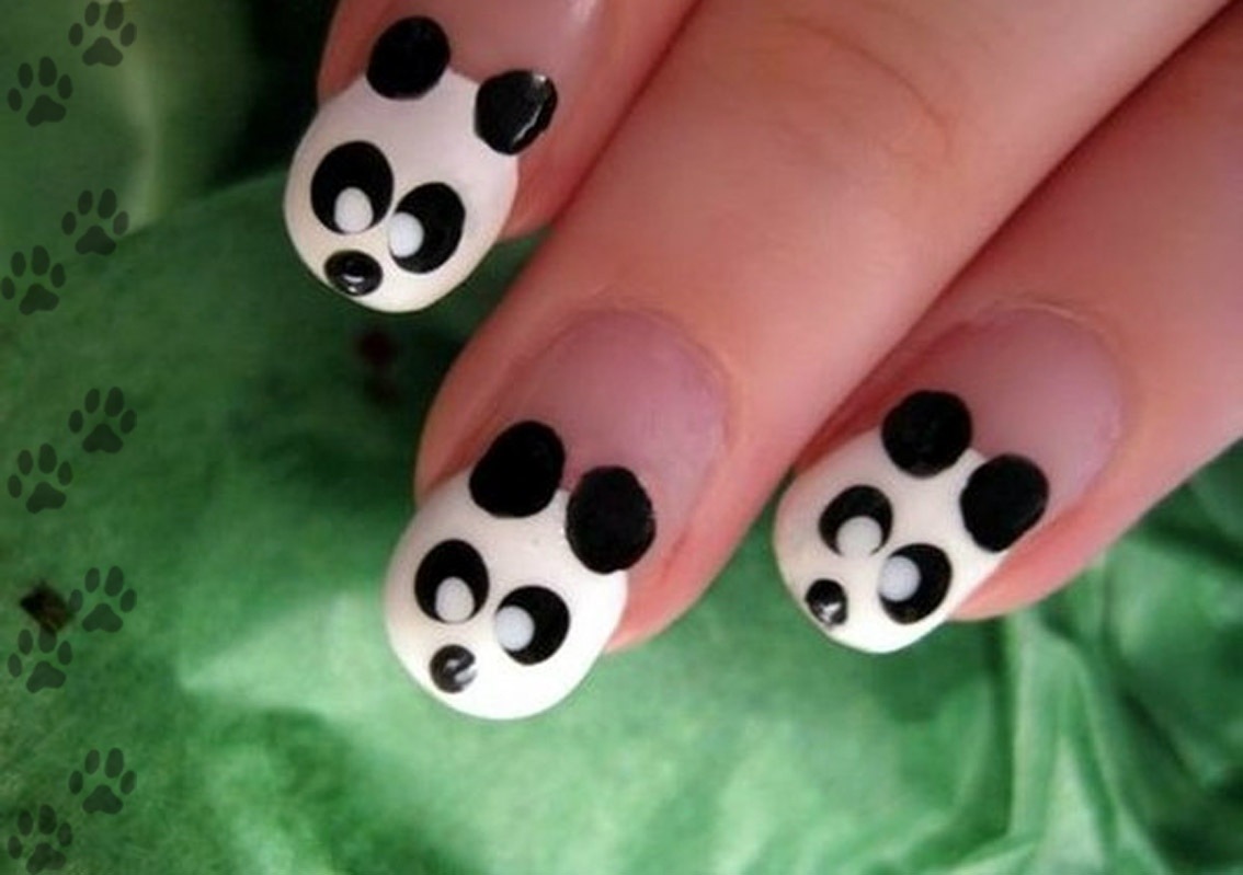 - Zvieratá. Zvieracie potlače sú obľúbené u dospelých aj u detí. Priťahujú, bavia ich. Rozdiel je v tom, že ženy používajú samostatný prvok pripomínajúci šelmu, ale budete sa musieť pokúsiť vykresliť celého zajačika alebo mačku. Je ťažké to urobiť doma, ak nemáte schopnosti kreslenia, ale môžete použiť nálepky alebo niekoľkokrát cvičiť. Panda je považovaná za módny trend. Na jeho obraz sú potrebné iba bezfarebné, čiernobiele laky.