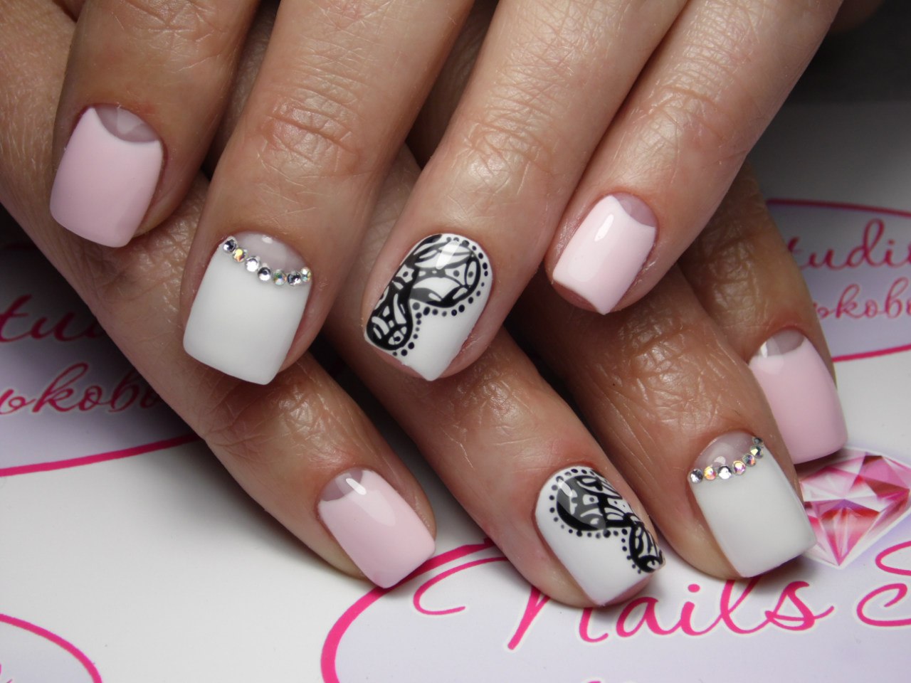 - Francúzsky - klasický vzhľad, ktorý je použiteľný pre rôzne vekové kategórie. Vyzerá to úhľadne, diskrétne a upravene. Úsmevy sú v trende v rôznych odtieňoch, takže nezakazujte prelakovanie bielej špičky na ružovú. Na jeden vybraný prst, napríklad na prstenník, môžete pridať malú kresbu alebo kamienok.