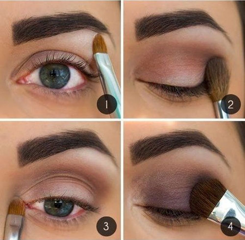 - Vytvorte základňu: naneste nahú alebo zosvetlenú béžovú farbu na dolné viečko a polovicu zóny obočia.