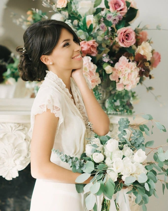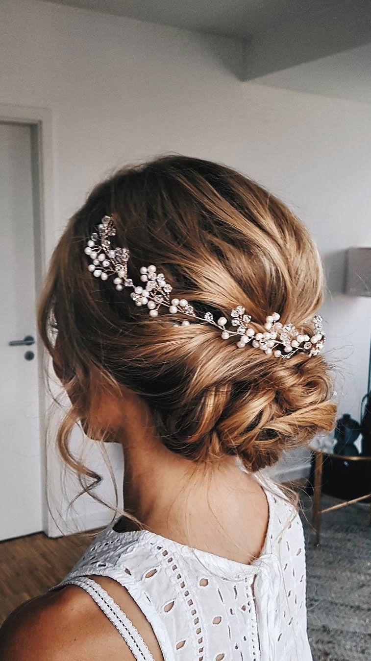 Pre pokojnú rodinnú oslavu sa zastavte u možnosti s stylingom z voľných prameňov, miernych vĺn, lakonických doplnkov.Pri registráciách mimo lokality v prírode alebo na morskom pobreží sa šťastné krásky často zastavujú na zložito položených kaskádach v štýle princeznej z hlbín vody alebo lesnej nymfy.