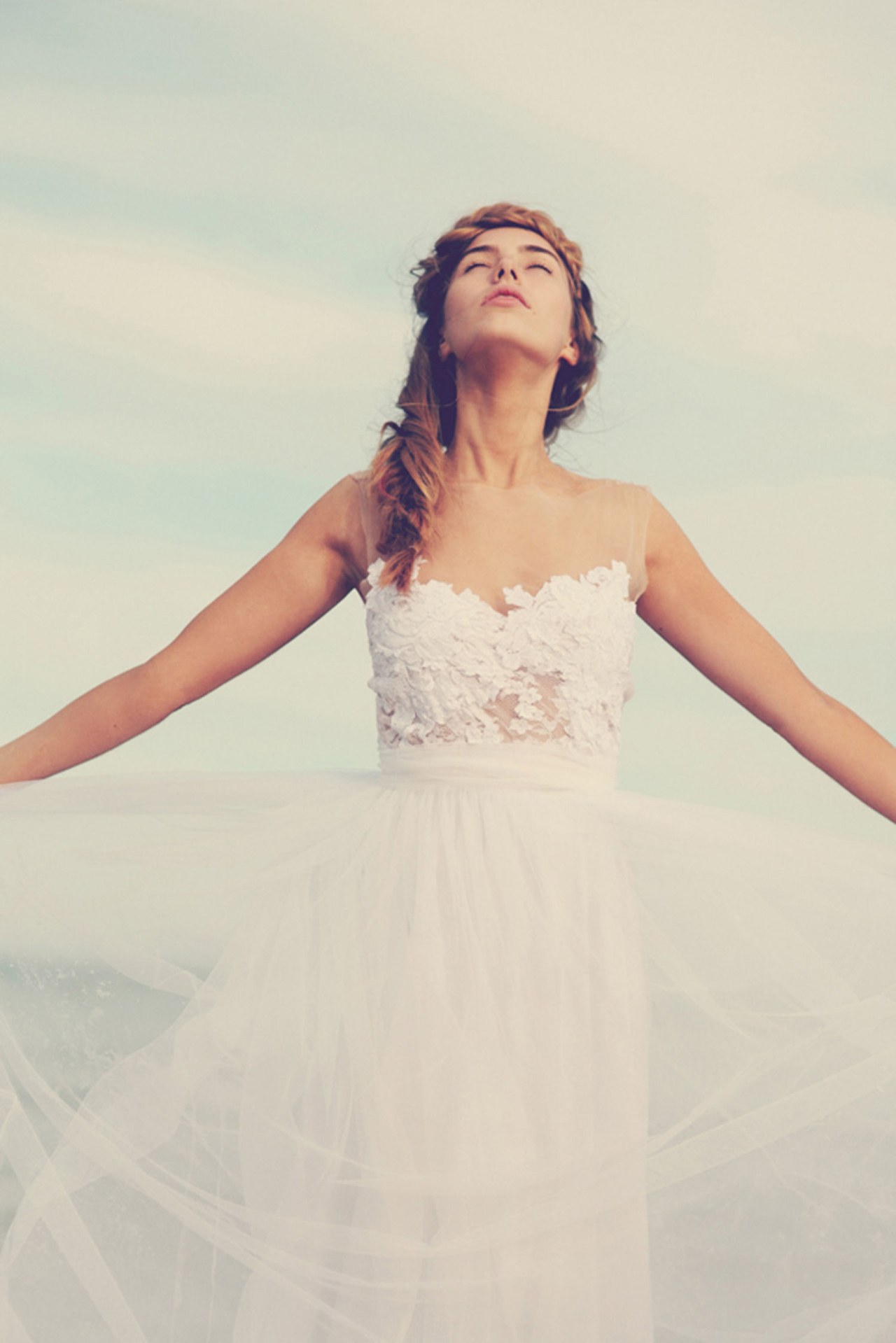 - otvorené ramená sú v harmónii s objemným štýlom, bouffant. Objemný dizajn zdôrazní krehkosť a milosť mladých.