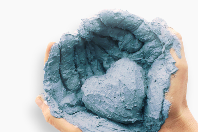- Argile bleue diluer avec de l'eau minérale jusqu'à consistance de crème sure. Ajouter épais et répartir sur tout le corps, en massant doucement du bout des doigts.