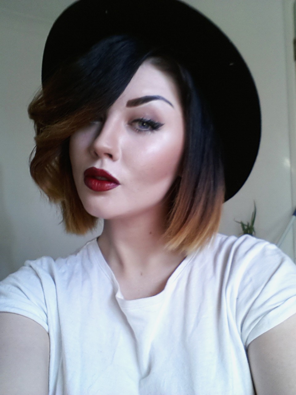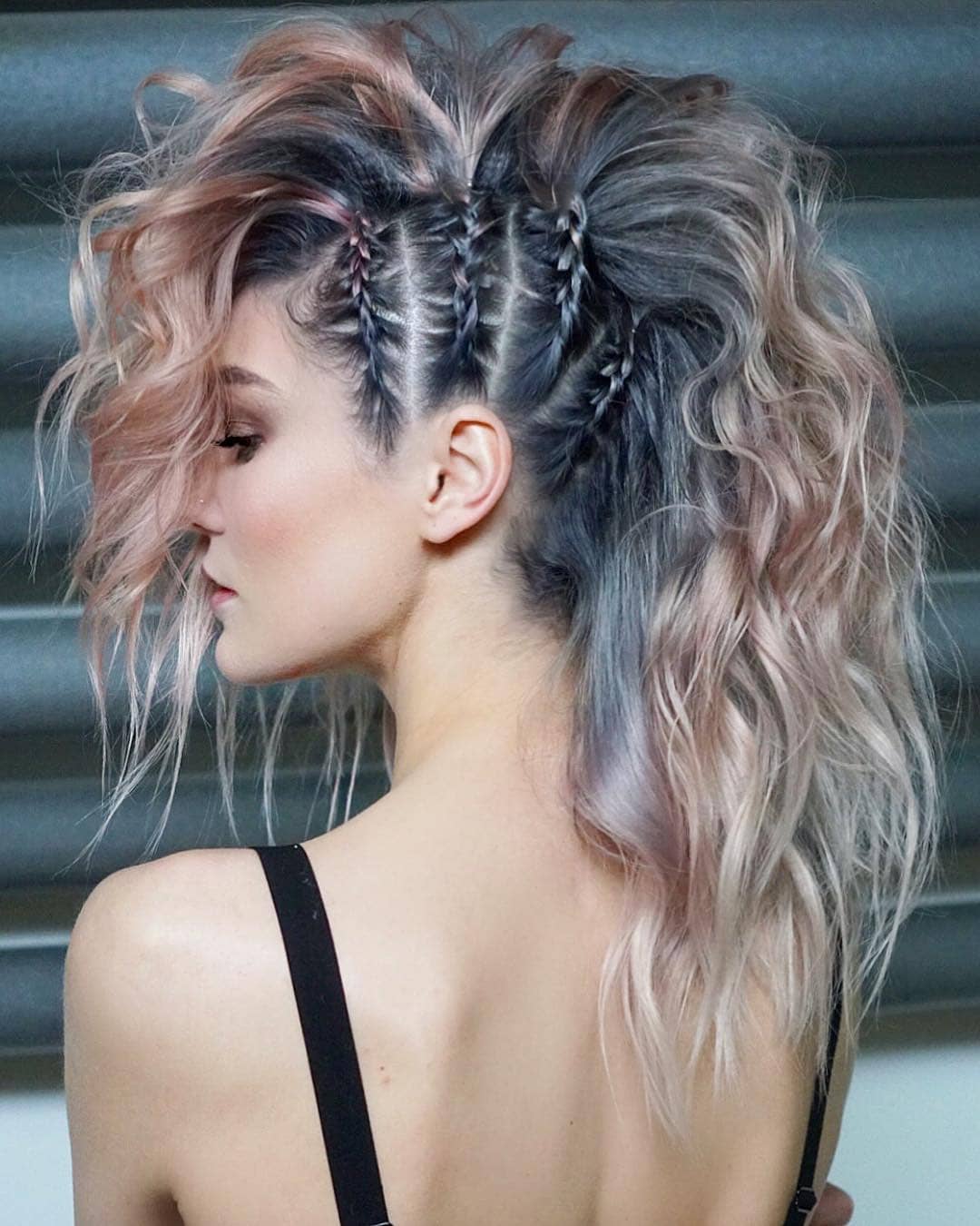 - gotisk för heta brunetter. Snygga gotiska motiv uppnås genom att omvandla djupa svarta rötter till platinablond i hårets ändar. Vågat, fängslande och effektivt förslag;