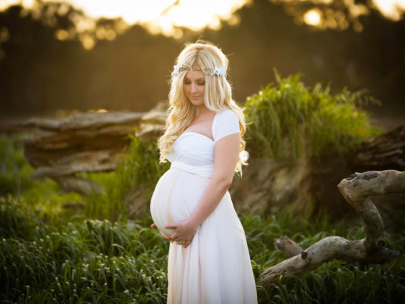 Le ventre au 5ème mois est très bien camouflé dans cette robe.