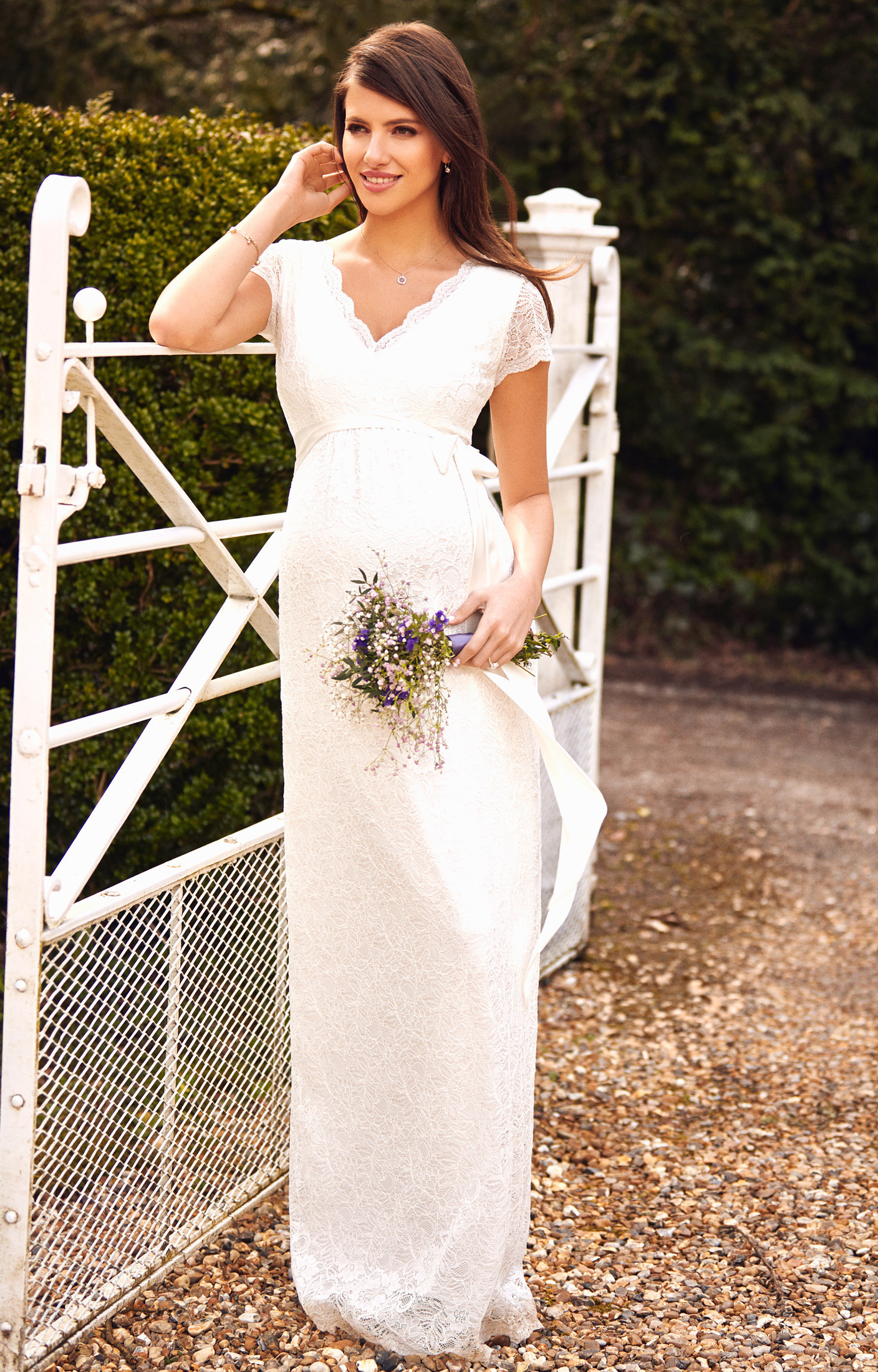 Les décorations de mariage blanches remplissent visuellement leur porteur. Cela signifie qu'il sera plus difficile pour une mariée enceinte portant un nœud blanc de cacher un ventre arrondi. Les stylistes recommandent de s'en tenir aux couleurs pastel.