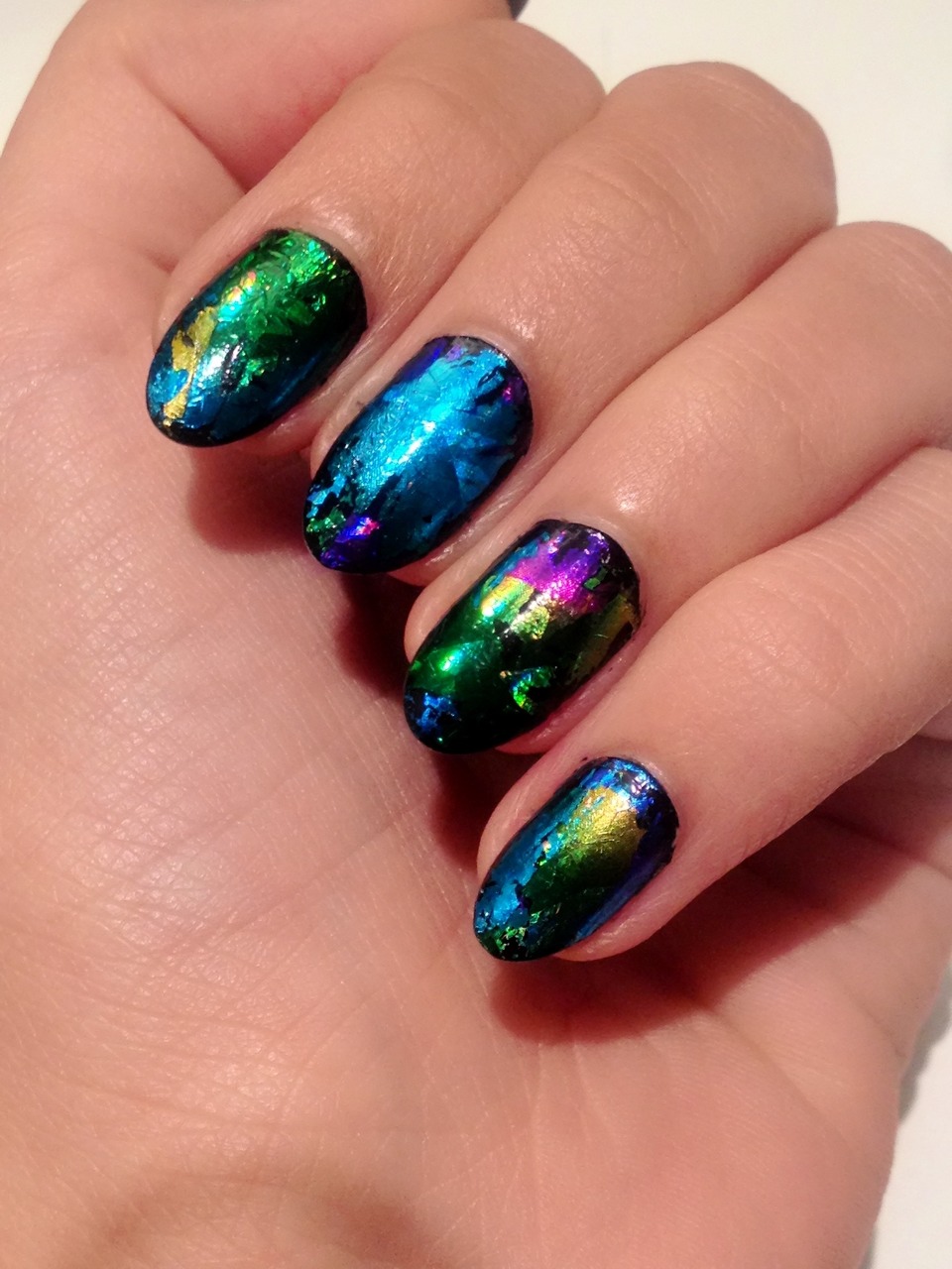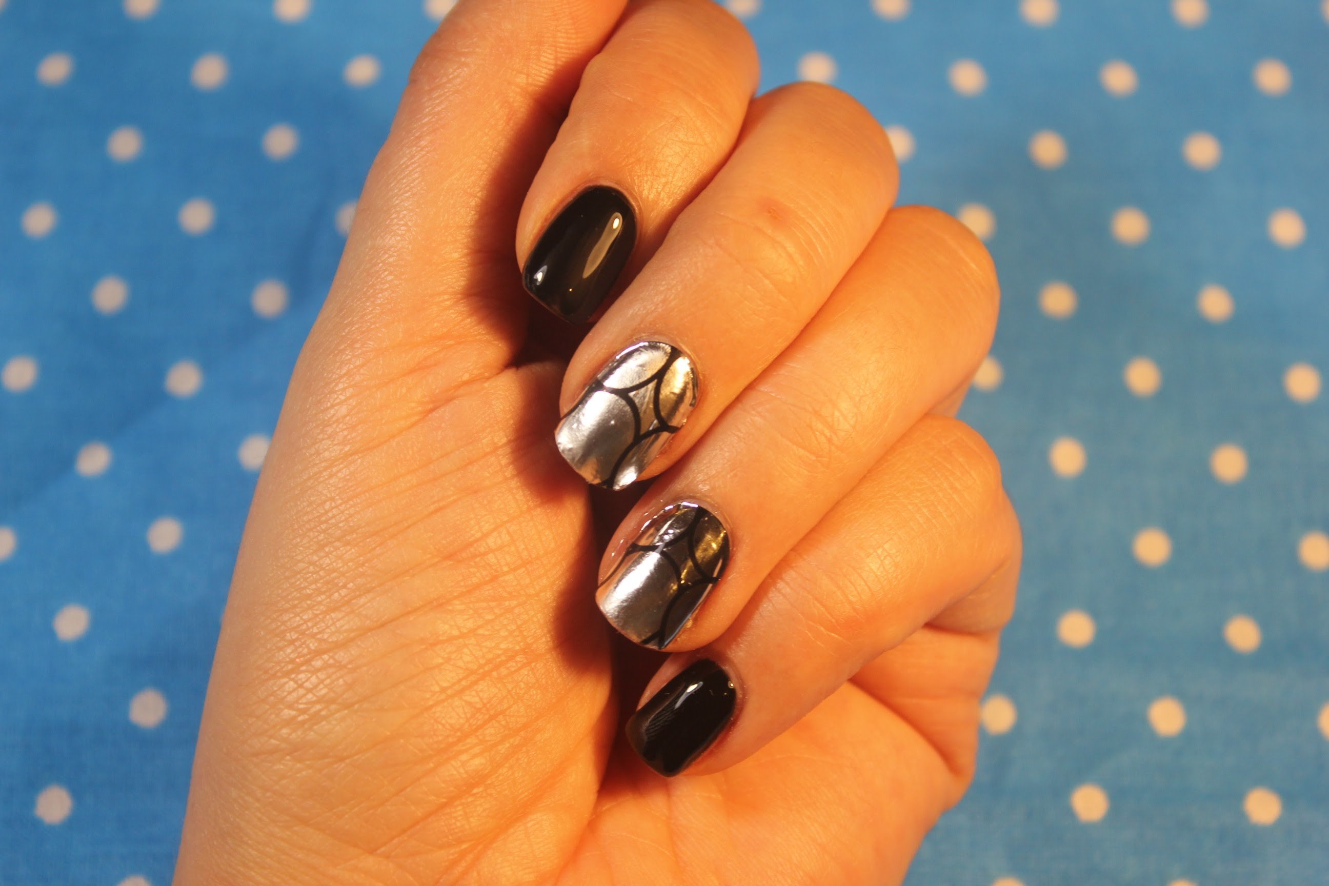 Ang pamamaraan na ito ay may isa pang pangalan - sumasalamin. Ito ang mas malinaw na naglalarawan sa obra maestra na ito sa mga kuko. Bumili ng makinis na metal na papel mula sa isang tindahan. Siguraduhin na walang embossing o burloloy dito.