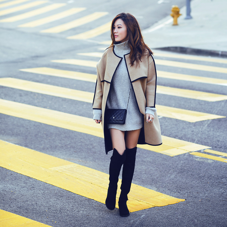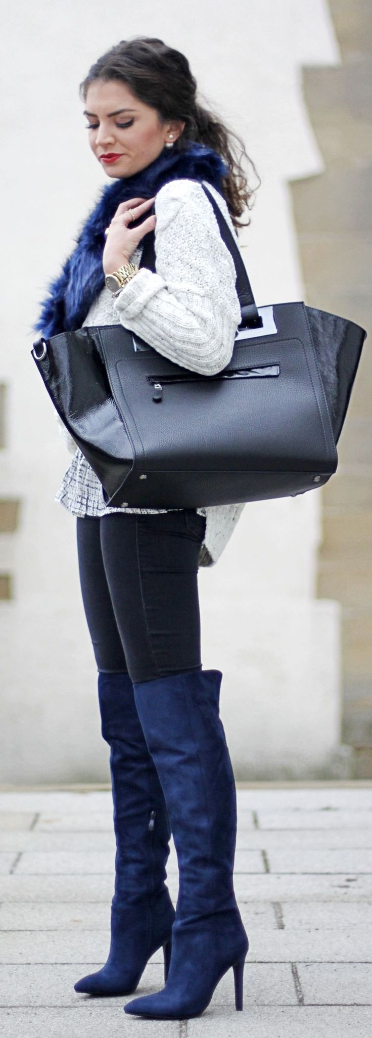 Bir kot aşığıysanız, bu sizin mükemmel seçiminiz. Tam bir görünüm için görünüme bir el çantası, eldiven ve şapka ekleyin. Renk ayrıca koyu yeşil, beyaz ve gri ile uyumludur. Dizin biraz üzerinde sarkan kalın örgü bir elbise giyin ve görünümü bir kürk manto ile tamamlayın. Bu sizi lüks, çekici ve sofistike gösterecektir.