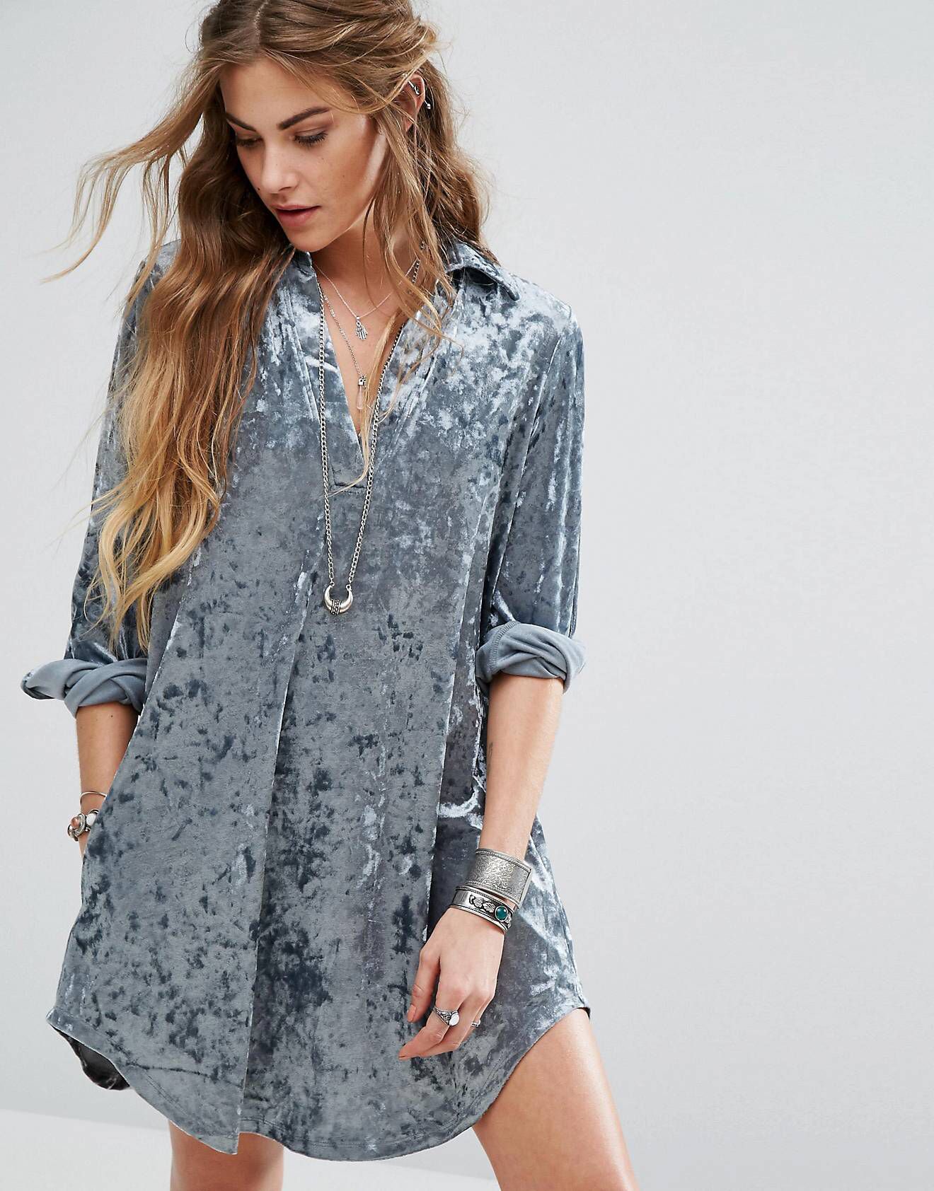 Premièrement, un tel tissu de velours rendra n'importe quel look festif. Si vous choisissez une silhouette libre et non ajustée, au début, votre entourage ne remarquera même pas les changements.
