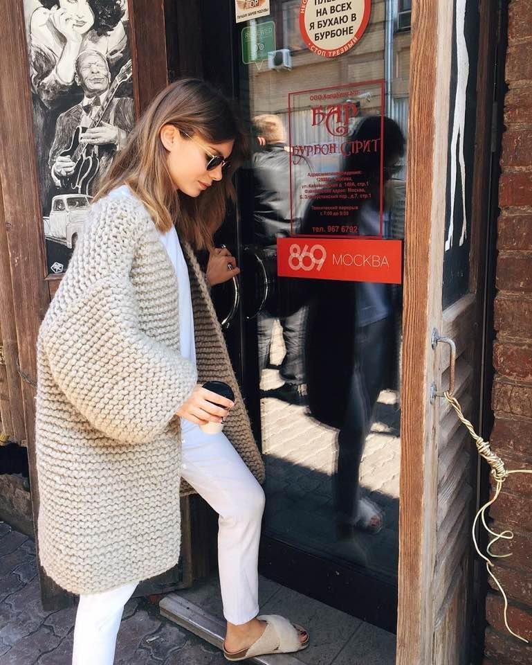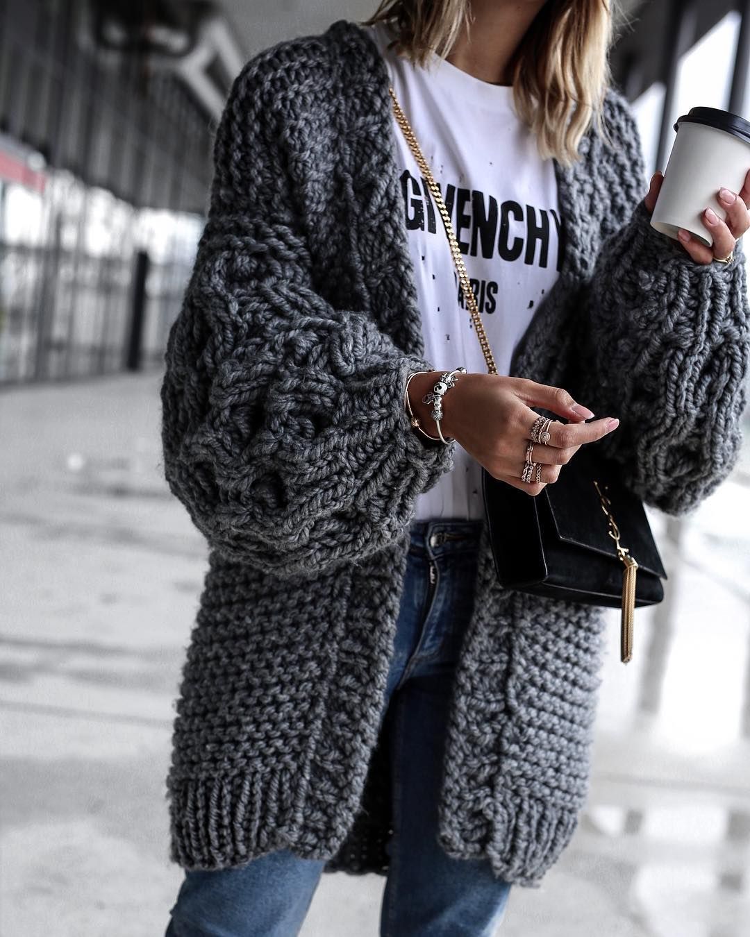 Comme mentionné ci-dessus, cette année, il est permis de jouer avec la longueur des cardigans, il est seulement important de déterminer les capacités de votre propre silhouette.