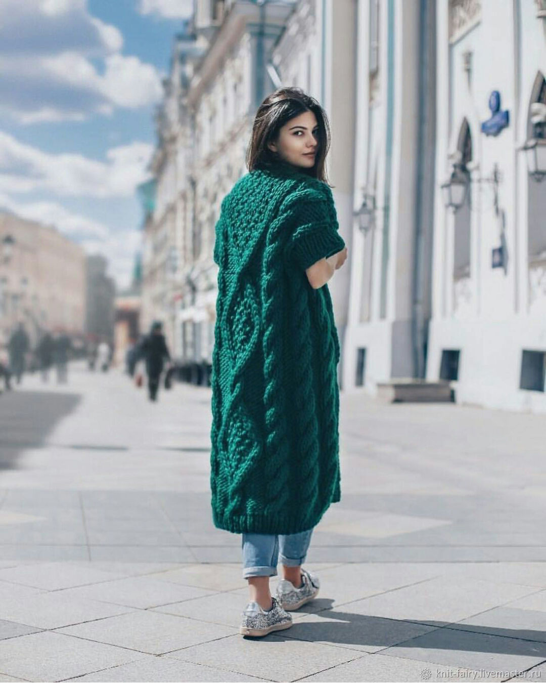 L'arène de la mode s'est réapprovisionnée avec une excellente offre - un produit tricoté, plus comme un manteau. En règle générale, des fils de tweed denses sont utilisés ici, mais il n'y a pas de doublure, ce qui rend le produit fini plus léger.