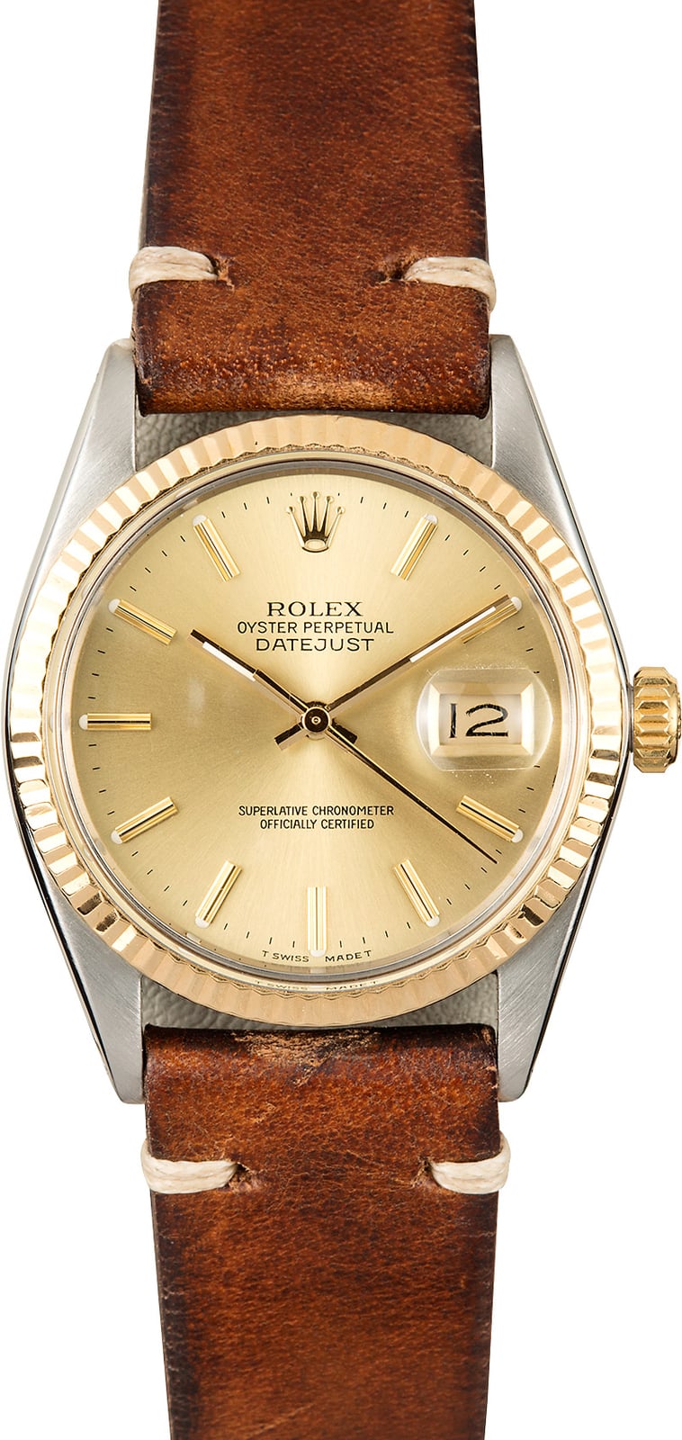 - Il y a une petite couronne gravée en dessous de 6 heures. Il est situé au dos du verre et peut être vu avec une loupe.